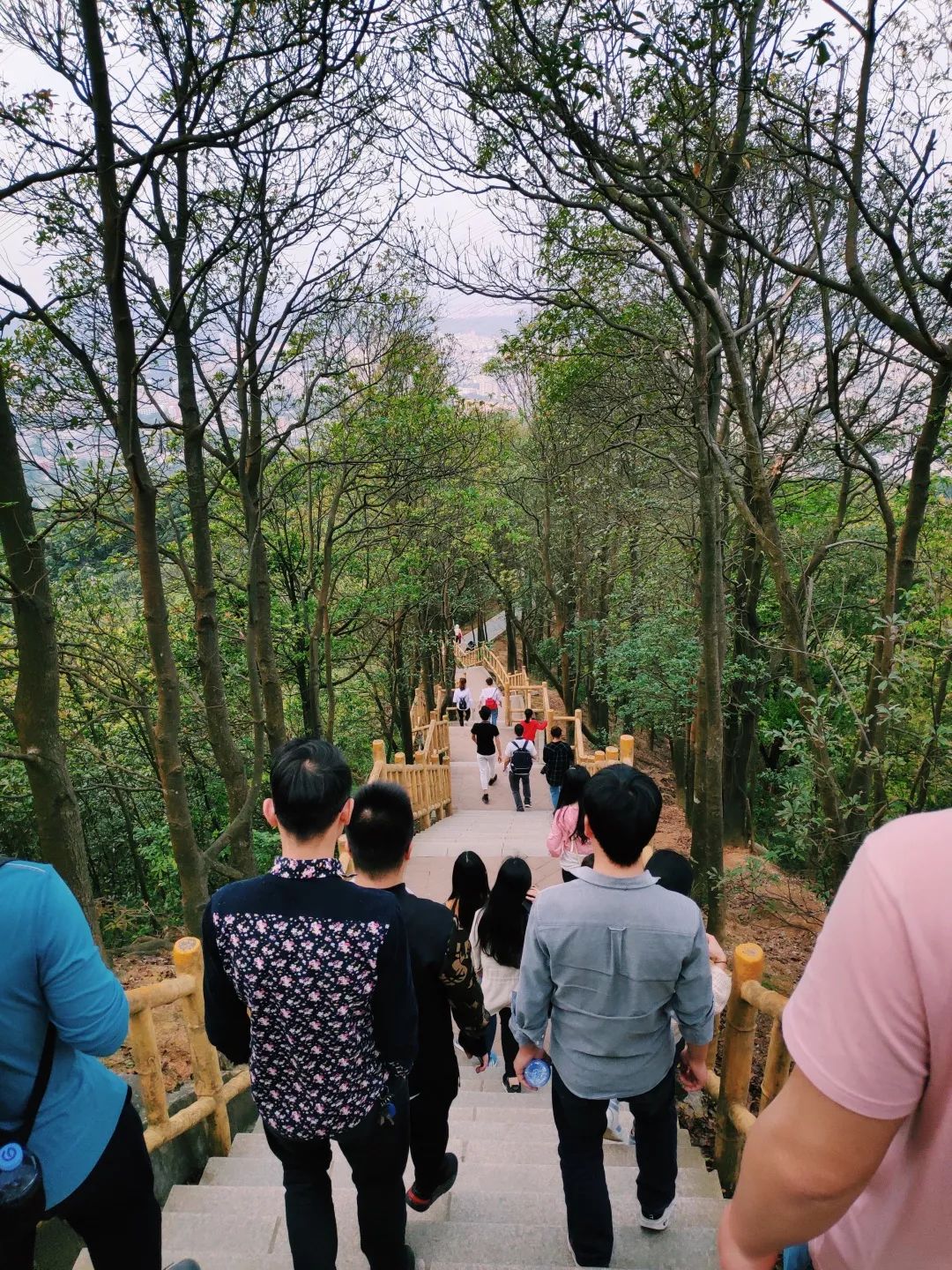 下午1:30,所有参与此次活动的同事们在羊台山公园山脚集合。抖抖精神鼓鼓劲,合影之后就向着山顶出发吧!