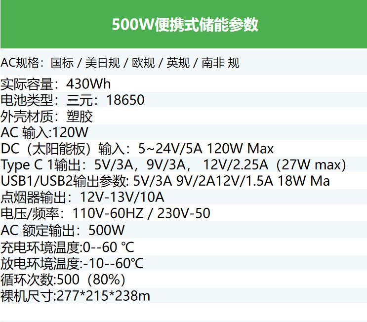 500W户外便携式储能电源