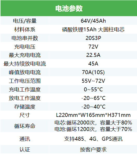 64V45Ah两轮/三车换电磷酸铁锂电池