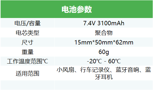 7.4V 3100mAh 智能家居锂电池