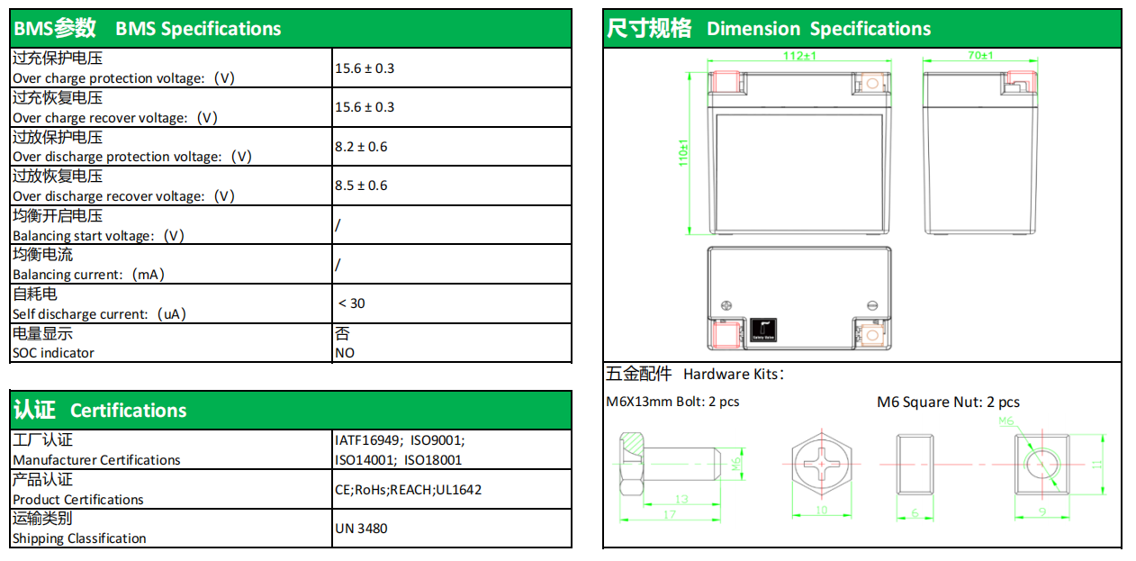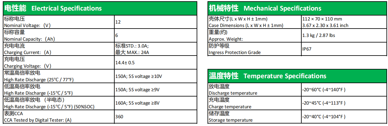 12V6Ah摩托车启停锂电池