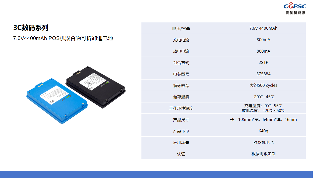 7.6V4400mAh POS机聚合物可拆卸锂电池