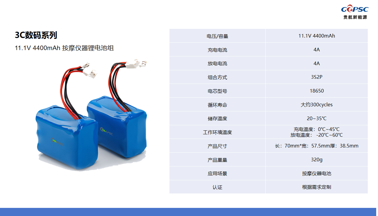 11.1V 4400mAh 按摩仪器锂电池组