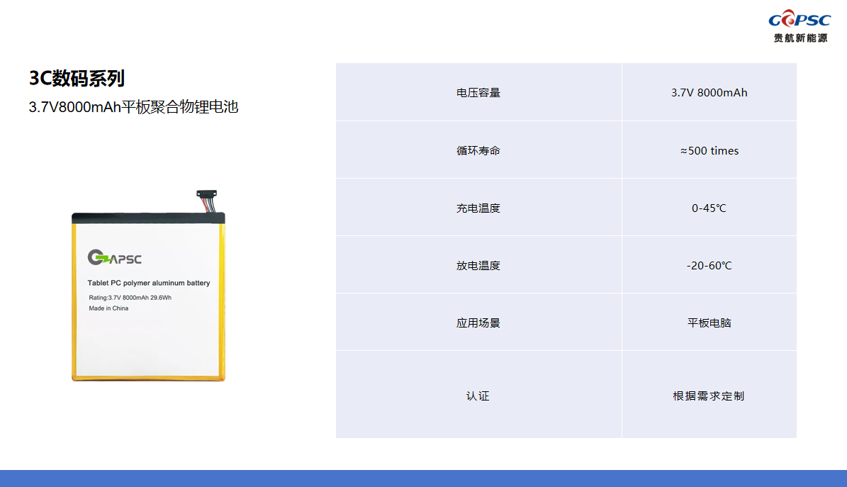 3.7V8000mAh平板聚合物锂电池