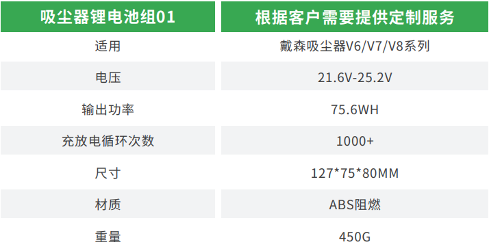 21.6V~25.2V 75.6Wh吸尘器锂电池组