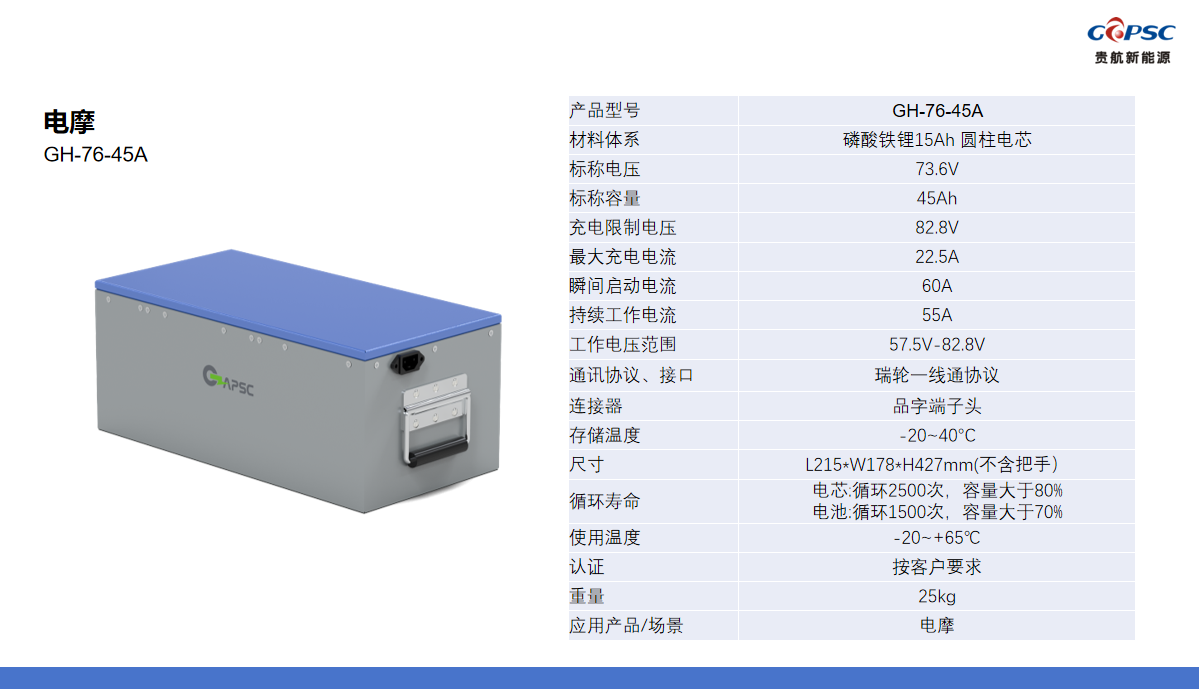 73.6V45Ah电动摩托车锂电池