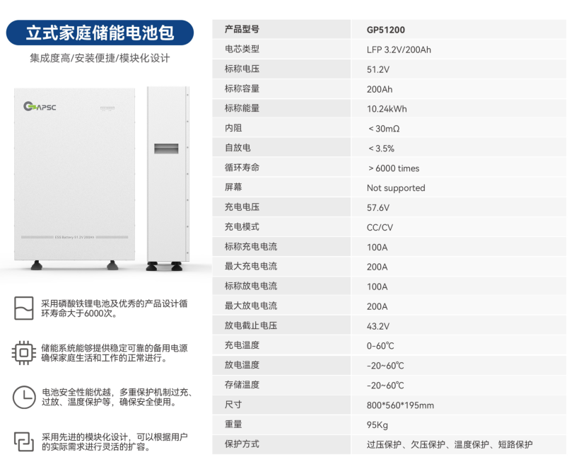 51.2V200Ah立式家庭储能电池包